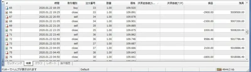 バックテストを行うと結果が日本円で表示されているか確認しましょう。