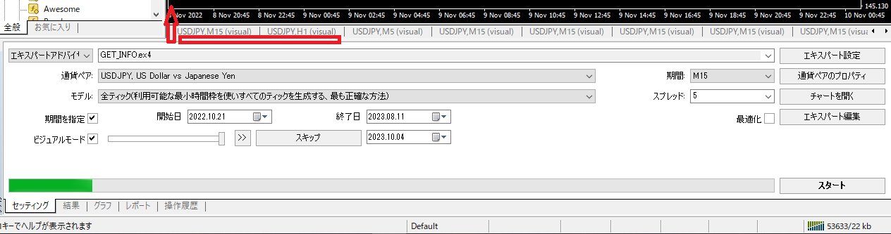 ※私は大きくEAの動きをかえた場合や、EAをよりよくしたい場合、もう何もする事が無い時はビジュアルモードにチェックを入れて改善点を見つけたりしています