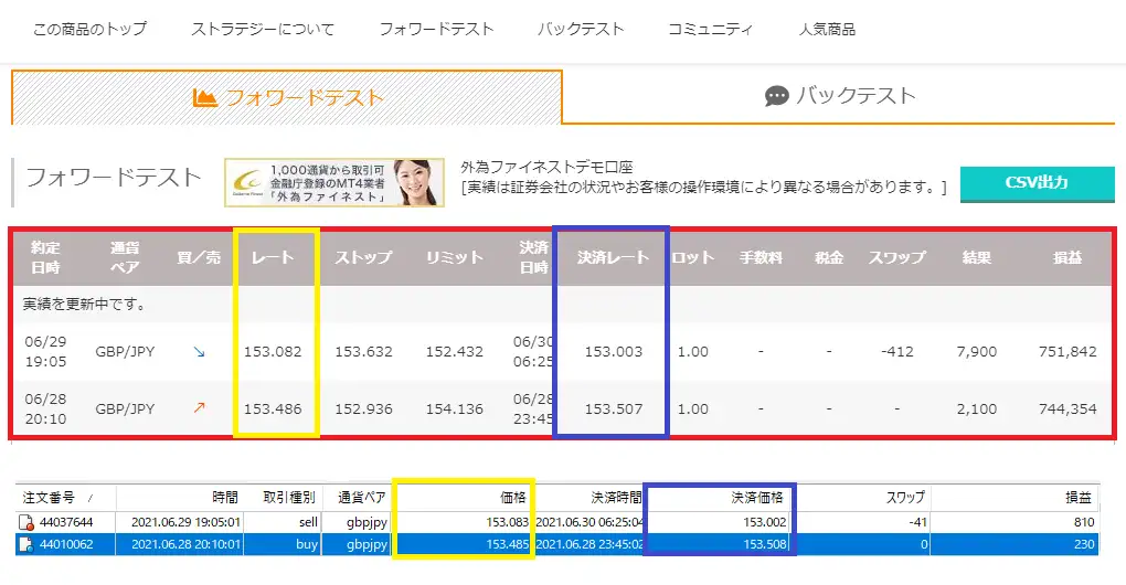 - ゴゴジャンのフォワードテストと結果を比較しても、ほぼ一致