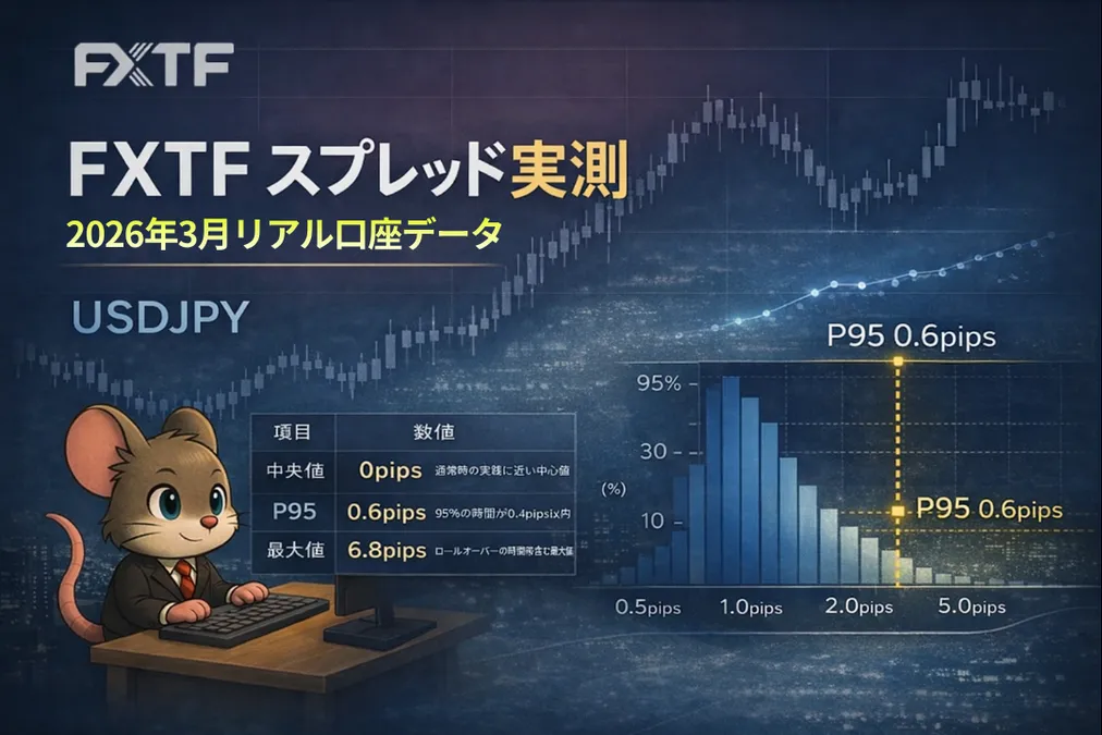 本記事では、FXTFリアル口座にて取得した2026年3月のUSDJPYスプレッド実測データをまとめています。
