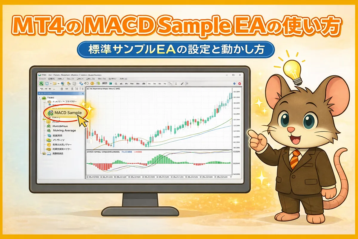 そんな方向けに、本記事ではMT4標準EA「MACD Sample」の使い方を、 初心者でもそのまま動かせるレベルで解説します。