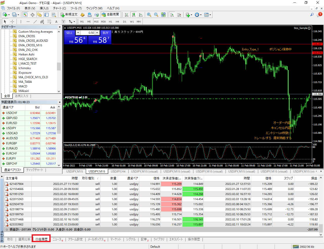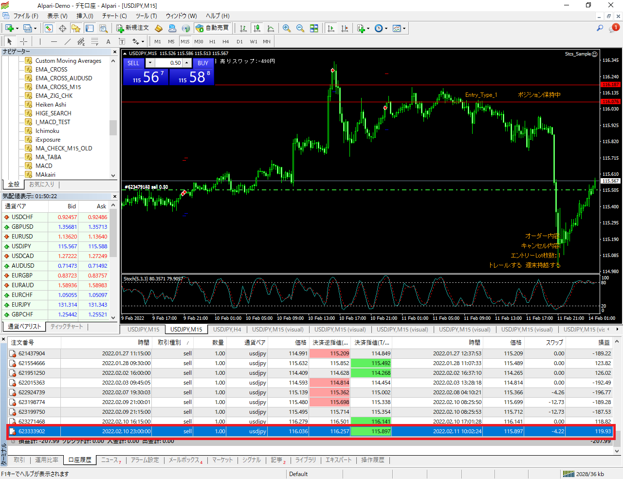 - 引数1・・・注文インデックスを指定します。最新のポジションは0、1つ前は1という感じです。