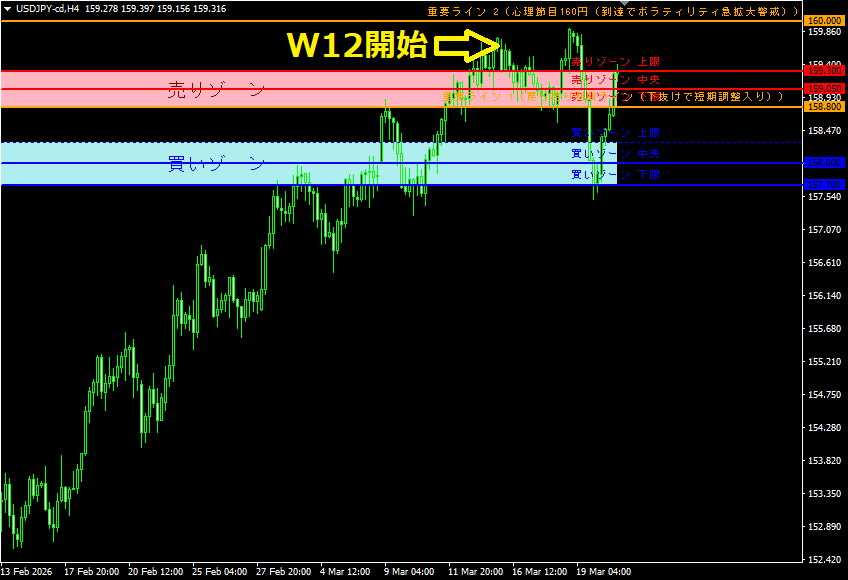 W12では159円台後半〜160円手前にかけて上値が抑えられ、