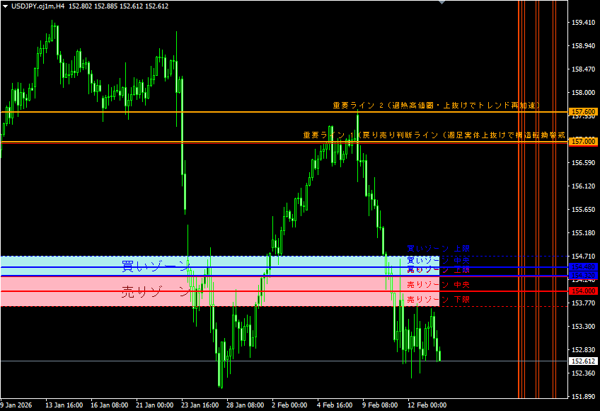 今週のUSDJPYを、売りゾーン・買いゾーン・重要ラインに分解して整理しました。